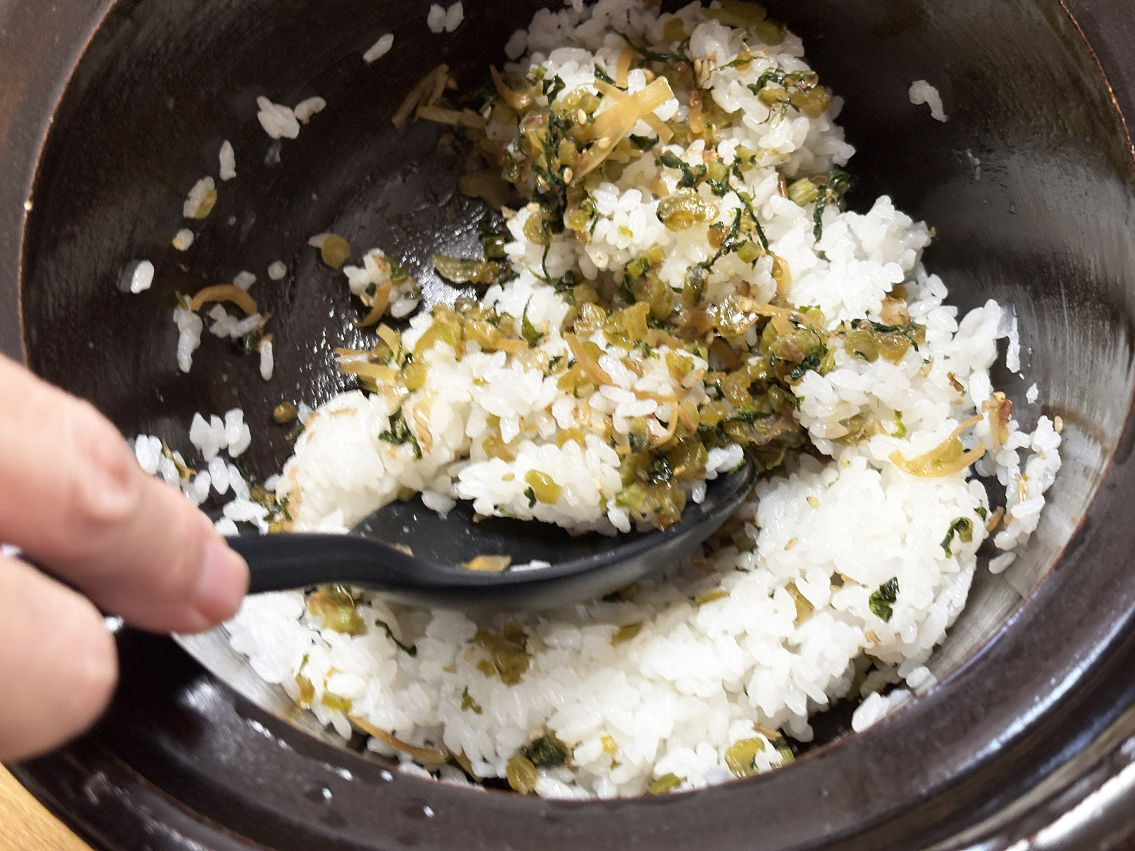 一口食べると香ばしい大根の葉のおかかの風味がふんわり広がります。